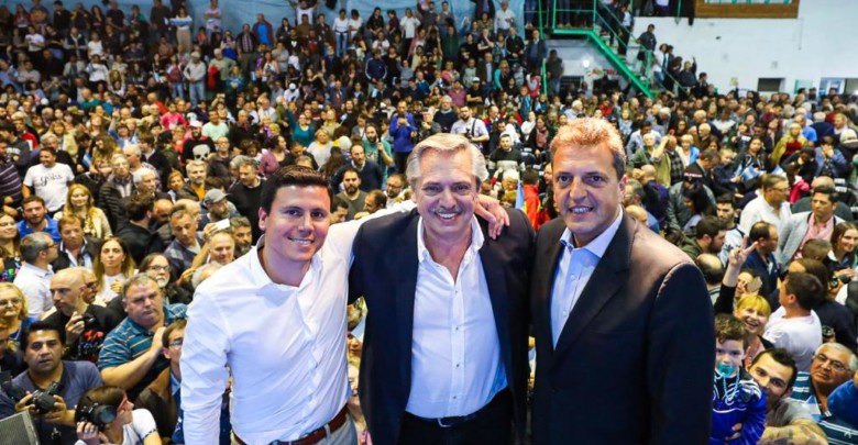 Los candidatos del Frente de Todos a presidente, Alberto Fernández, a diputado nacional Sergio Massa y a intendente de Olavarría, Federico Aguilera, encabezaron esta tarde un acto en el Club Pueblo Nuevo de la ciudad bonaerense.