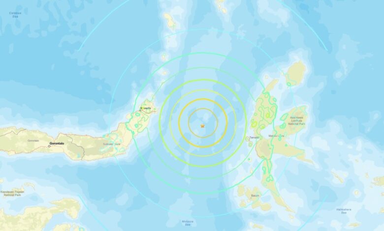 El terremoto se produjo a una profundidad de 35 kilómetros y tuvo su epicentro a unos 127 kilómetros de la ciudad de Ternate. El Sistema de Alerta de Tsunamis de EE.UU. advirtió de la posible generación de olas de tsunami en un radio de 1.000 kilómetros alrededor del epicentro, que podrían afectar costas de Indonesia, Filipinas y Malasia.