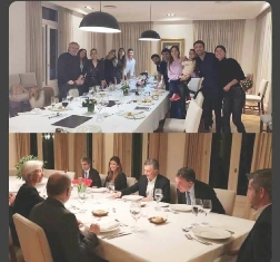 Otra gráfica en la que se pone de manifiesto el recurso del contraste, es justamente la del brindis de cumpleaños de Fabiola donde aparece el presidente y amigos- descuido lamentable que solo sirvió para abonar la sed de venganza de la oposición-, y que deja ver en un mismo plano otra foto que titulan: “la cena que no te indignó”, donde aparece Mauricio Macri con la ex directora del FMI además de Dujovne, ex Ministro de Economía y Juliana Awada, aquel aciago día que se acordó el millonario préstamo pedido por Macri al Fondo y por el cual endeudó a generaciones de argentinos/as.