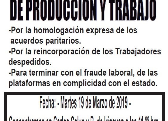 El dirigente agregó que “exigimos la reincorporación de los compañeros despedidos, el fin del fraude laboral en las plataformas de mensajería y reparto domiciliario, y la homologación expresa de nuestras paritarias; estamos preparados para pelear durante todo 2019 si es necesario, para visibilizar y encontrar la solución del conjunto de dificultades que atraviesa la logística en dos ruedas”.