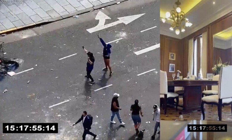 En la presentación se remarcó que el despacho que ocupa la presidencia del Senado fue uno de los blancos de piedrazos que impactaron contra el edificio parlamentario e, incluso, que las manchas de pintura detectadas alrededor de sus ventanas podrían ser un indicio de que los atacantes buscaron marcar esas oficinas.