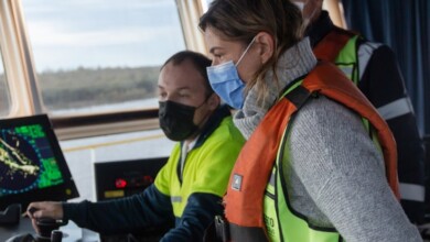 La presidenta del Consorcio de Gestión del Puerto de San Nicolás, Cecilia Comerio, junto a trabajadores portuarios, recorrió la draga…
