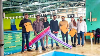 Agustín Balladares en el lanzamiento del primer curso de natación para chicos y chicas de los barrios populares de Lanús