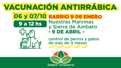 El Municipio de Esteban Echeverría desplegará un nuevo operativo de vacunación antirrábica mañana miércoles 6 y el jueves 7 en…