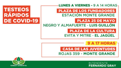 De lunes a viernes, el Municipio de Esteban Echeverría continúa realizando testeos gratuitos de COVID-19 en distintos puntos del distrito. La…