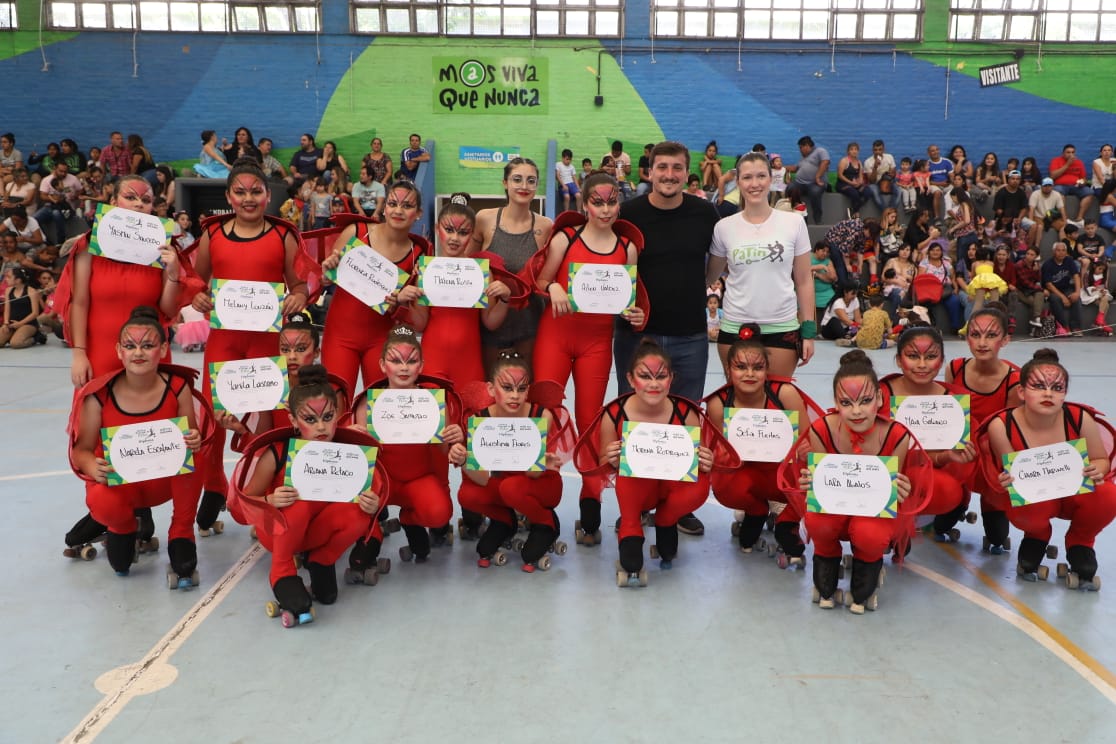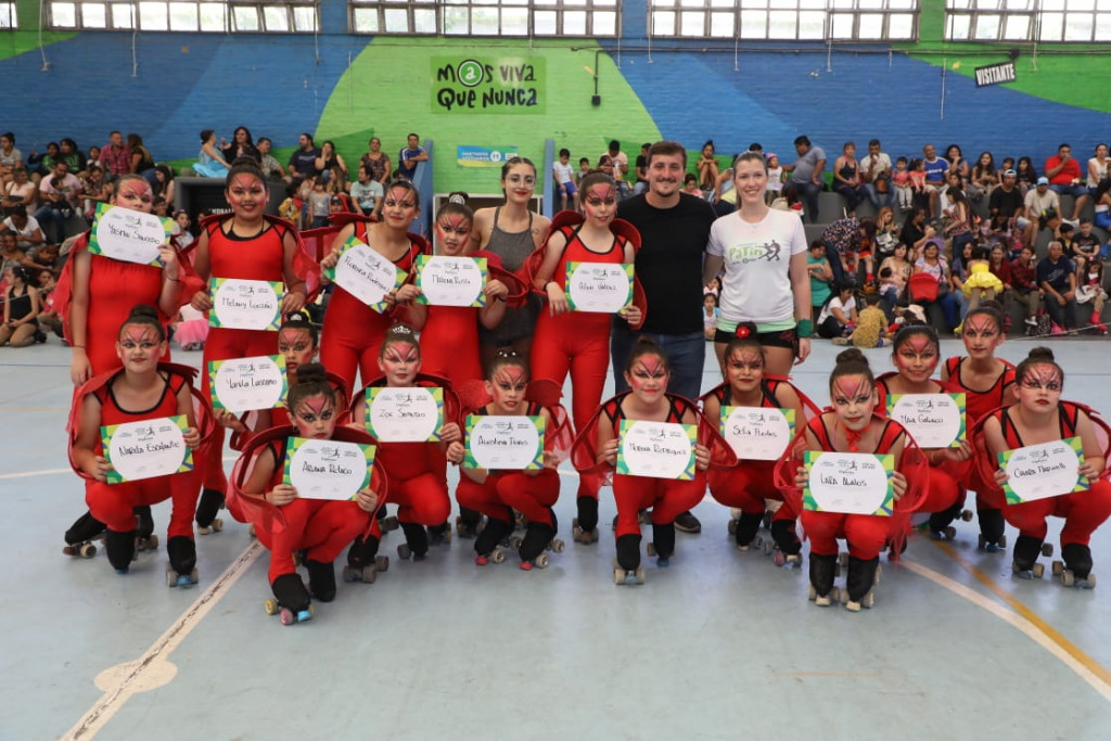 Por la tarde, en el Polideportivo Gatica, la Escuela Municipal de Patín tuvo su muestra de fin de año, donde gran cantidad de niñxs y jóvenes expusieron su talento en la pista, ante la mirada de sus familiares y centenares de vecinxs.