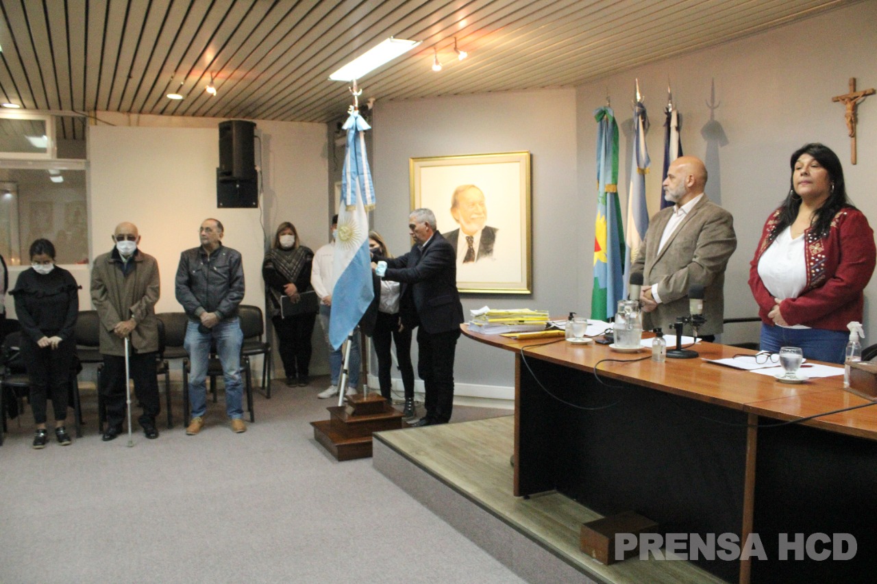 Muchos temas importantes se trataron en el recinto, las opiniones y los debates con respeto son ya una costumbre en cada sesión. En esta oportunidad, el Concejal y Presidente del Bloque del FdT Rolo Galván, estuvo a cargo de izar la bandera, para luego entonar el Himno Nacional.