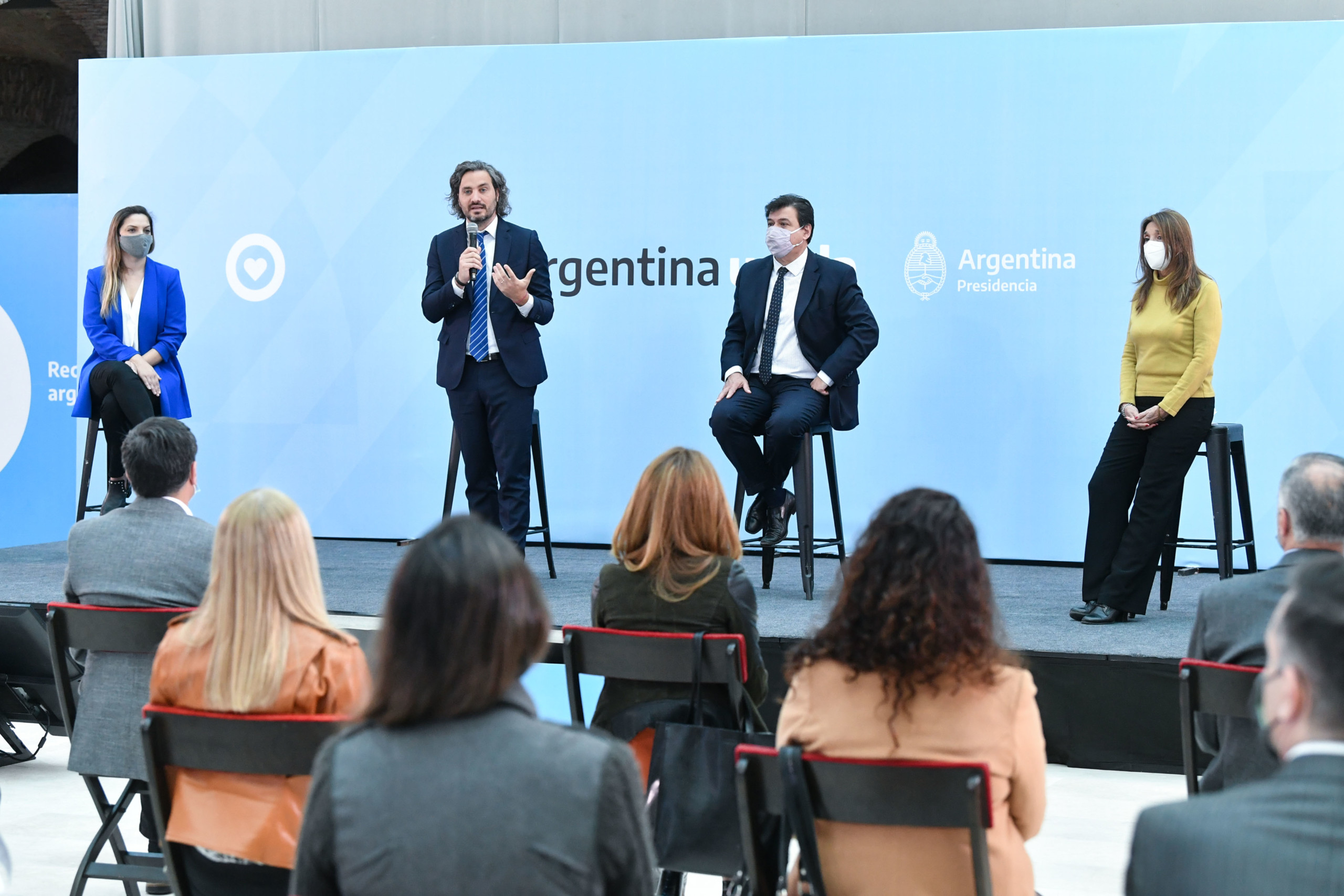 El jefe de Gabinete de Ministros de la Nación, Santiago Cafiero y el ministro de Trabajo, Empleo y Seguridad Social, Claudio Moroni, encabezaron esta mañana en el Museo del Bicentenario de la Casa Rosada, el lanzamiento del Programa de Fortalecimiento Federal para la Erradicación del Trabajo Infantil “Promotores de Infancias Libres de Trabajo Infantil”.