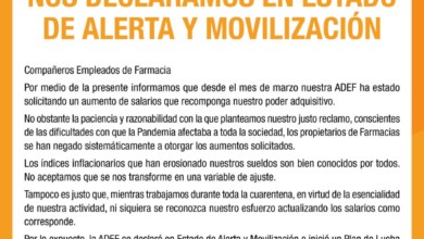 La Asociación de Empleados de Farmacia -ADEF-, que conduce Víctor Carricarte, reclama “un aumento salarial justo para las trabajadoras y…