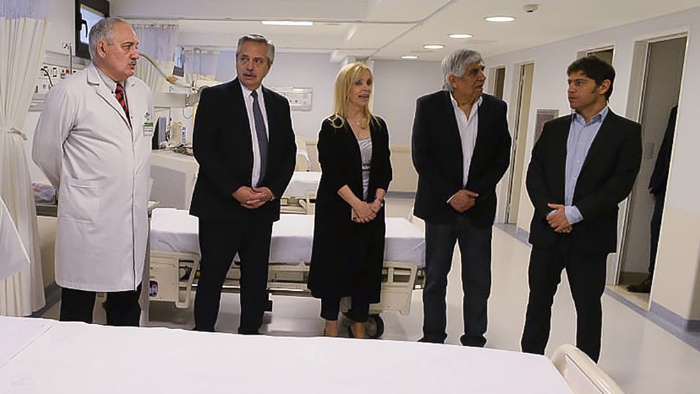 Alberto Fernández junto a Kicillof y Moyano visitó el Sanatorio de Camioneros, que se suma con 330 camas a la lucha contra el coronavirus.