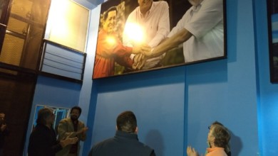 Descubren un cuadro de Lula, Chávez y Kirchner