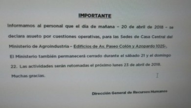 Con un breve comunicado, en el que se informa a los empleados que el Ministerio de Agroindustria permanecerá cerrado…