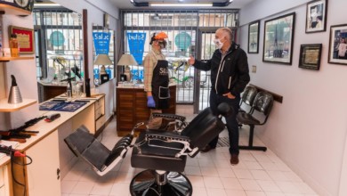 El intendente de Lanús, Néstor Grindetti, se acercó hasta la peluquería de Luis Barrios, ubicada en Lanús Oeste. Tanto éste…