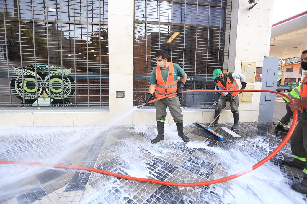 Desinfección en entidades bancarias y veredas de Monte Grande
