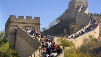 Porción de la Gran Muralla China abarrotada de turistas. Las vacaciones, los viajes, los millones y millones de turistas también…