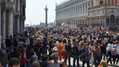 La plaza San Marcos de Venecia, superpoblada de turistas. Asociaciones vecinales y agrupaciones de activistas de catorce ciudades y regiones…