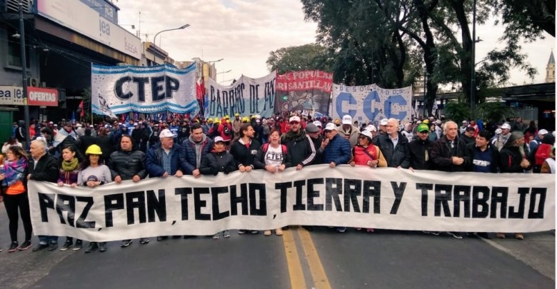 Las organizaciones sociales marchan bajo el lema «paz, pan, tierra, techo y trabajo» acompañados por organizaciones gremiales de la CGT y las CTA.