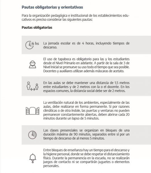 Además, habrá una jornada de trabajo docente por mes, sin asistencia de estudiantes, para favorecer la articulación entre las actividades presenciales y no presenciales.