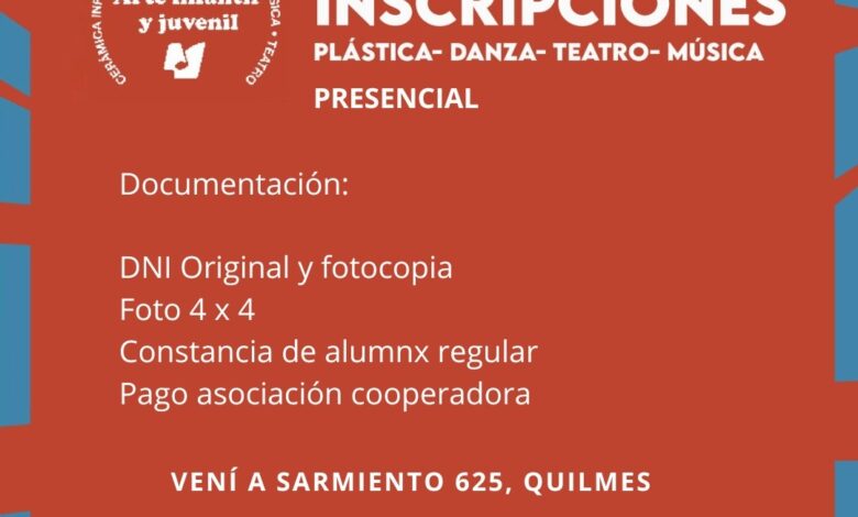 La inscripción está disponible desde hoy, martes 1 de noviembre, presencialmente en la EMBA, de lunes a viernes de 9 a 20, presentando DNI original y fotocopia, una foto 4×4, certificado de alumno regular de la escuela a la que concurre y pago colaborativo de la cooperadora. En caso de ser menor de edad, el alumno deberá concurrir acompañado de un adulto y con la documentación requerida.