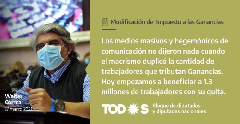 «Los medios masivos y hegemónicos de comunicación no dijeron nada cuando el macrismo duplicó la cantidad de trabajadores y jubilados que tributan Ganancias durante los años que gobernaron. Hoy empezamos a beneficiar a 1.3 millones de trabajadores y jubilados con su quita».