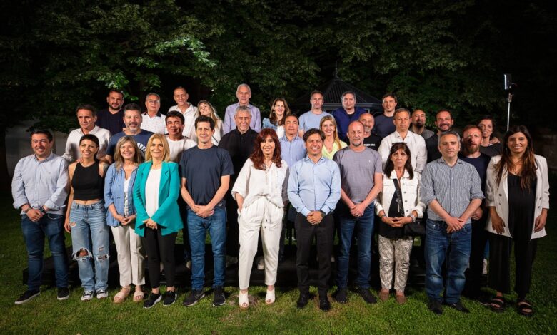 La vicepresidenta Cristina Fernández de Kirchner compartió la noche del jueves un encuentro con dirigentes del peronismo en la residencia oficial del gobernador bonaerense, Axel Kicillof, tras el acto que encabezó por el Día de la Militancia en el estadio Diego Armando Maradona, en la ciudad de La Plata.