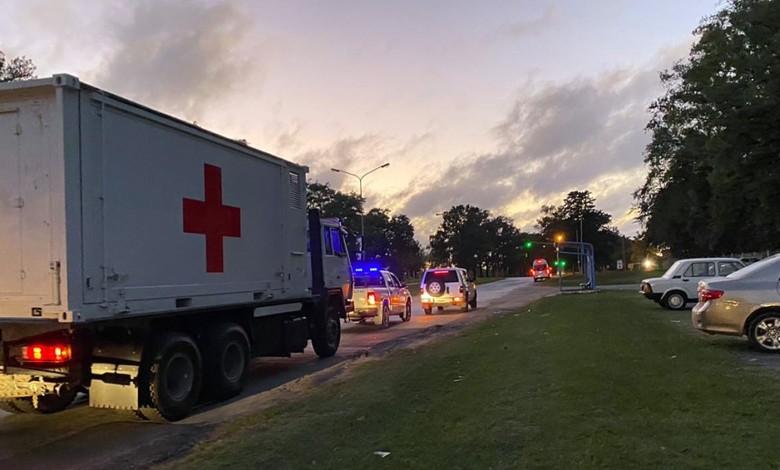 El hospital móvil del Ministerio de Defensa era trasladado esta mañana al hospital «Simplemente Evita» de González Catán, en el partido de La Matanza, para reforzar su capacidad con el fin de atender las necesidades ante la segunda ola de la pandemia del coronavirus en el país.