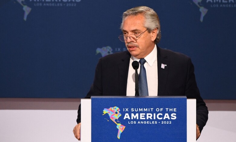 Ayer, al pronunciar su discurso ante los líderes de la cumbre que se desarrolla en Los Ángeles, el mandatario argentino pidió la renuncia del secretario general de la OEA , el uruguayo Luis Almagro, le solicitó a su par norteamericano Joe Biden una reformulación de la política de su país hacia América Latina y cuestionó el apoyo de su antecesor Donald Trump a la gestión de Mauricio Macri.