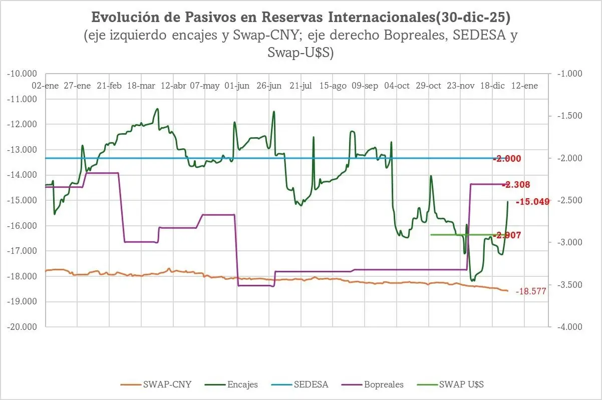 Estas operaciones cruzadas buscan instalar la idea de mayor solvencia y cumplimiento del programa de acumulación de reservas, aunque por la falta de divisas el Tesoro tendrá que salir a pedir un crédito puente con un sindicato de bancos internacionales para afrontar el pago de los servicios de la deuda de este viernes.