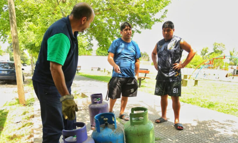 Los equipos del Municipio de Esteban Echeverría realizaron un operativo de recarga de garrafas a bajo costo en el barrio El Fortín, de 9 de Abril.