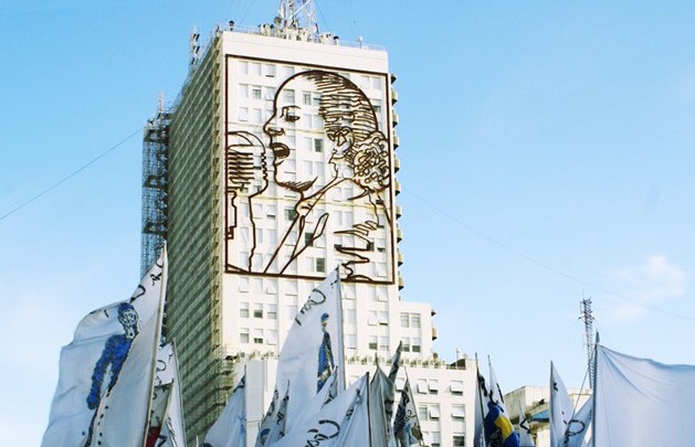 El edificio de la 9 de julio al 1925 es el único en la amplia avenida. El único que tiene en los dos lados y en lo alto el rostro de Evita. Hasta el 2015 era el símbolo iluminado de la Argentina, hoy es el rostro apagado de alguien que murió muy joven luchando por los que menos tienen.