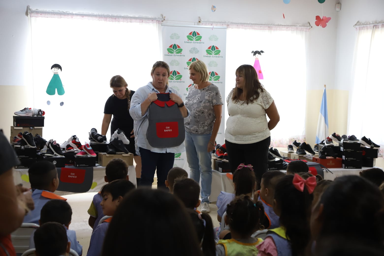 El Municipio de Esteban Echeverría avanza con la entrega de pintorcitos y zapatillas a niñas y niños de 3 a 5 años de edad con el objetivo de promover la igualdad de condiciones entre estudiantes. La actividad se realizó en Monte Grande Sur y estuvo a cargo de los equipos municipales y la legisladora provincial Magui Gray.