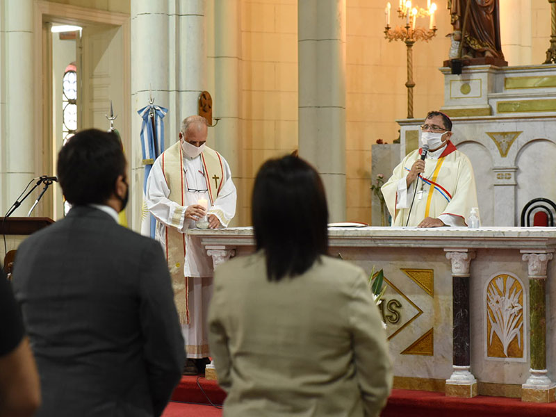 El oficio religioso contó con las medidas de higiene y cuidados que requiere la emergencia sanitaria.