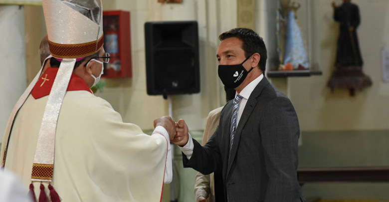 Esta tarde, el intendente –Andrés Watson- concurrió a la iglesia San Juan Bautista, donde el Obispo Carlos Tissera presidió la celebración de acción de gracia, en el marco de los festejos por los 130 años de la ciudad.