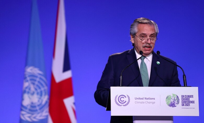 «La Argentina no tiene intención de que esta COP quede solo en palabras», dijo Fernández y propuso la creación de un Comité político y técnico sobre «financiamiento climático, con representación equitativa de países desarrollados y países en desarrollo».