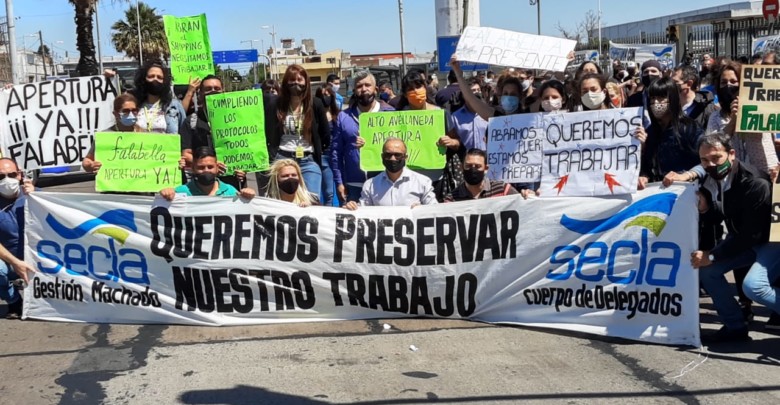 “Queremos preservar nuestro trabajo”, pedían los pasacalles y carteles que rodearon el centro comercial junto con las y los trabajadores mercantiles que, desde el inicio del Aislamiento Social, Preventivo y Obligatorio decretado por la pandemia, vieron interrumpida su jornada laboral.