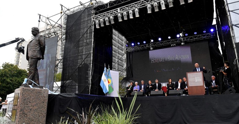 El Senado de la provincia de Buenos Aires homenajeó al ex presidente de la Nación Raúl Alfonsín con el descubrimiento de una estatua de bronce de su figura en la tradicional Plaza Moreno del centro de la ciudad de La Plata.