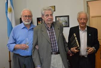 Al culminar de la reunión fueron homenajeados el referente de APYME Mendoza Enrique Tarditi, de larga trayectoria en la mesa nacional de la entidad, el economista Juan Carlos Amigo, miembro fundacional de la organización, y el dirigente Néstor Callegari, militante del empresariado nacional.
