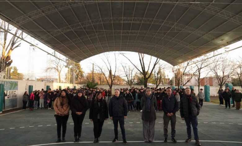 El jefe comunal de Esteban Echeverría, Fernando Gray, inauguró el techo parabólico que se construyó en el playón deportivo de la Escuela Secundaria N° 7 del barrio Las Colinas, en Monte Grande Sur. A la institución asisten 900 alumnas y alumnos.