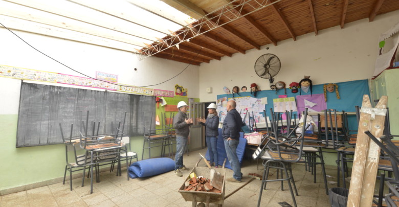 El intendente de Esteban Echeverría, Fernando Gray, supervisó el avance de las obras de refacción que el Gobierno Municipal realiza en la Escuela Primaria N° 55, de Monte Grande Sur, institución a la que se le voló el techo por el temporal.