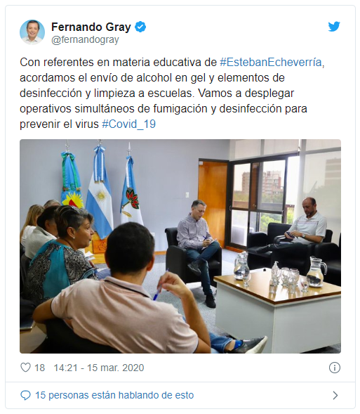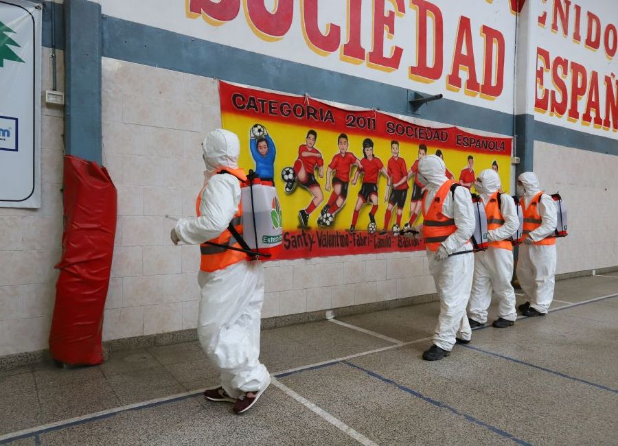 El intendente de Esteban Echeverría, Fernando Gray, supervisó los trabajos de desinfección en la Sociedad Española de Monte Grande, en el marco de los operativos que se desarrollan en instituciones de bien público, edificios municipales, dependencias e instituciones educativas.