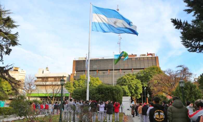 Durante la conmemoración, estudiantes, docentes y autoridades educativas izaron la Bandera Nacional, la Bandera Provincial y la Distrital, y cantaron el Himno Nacional, que incluyó su interpretación en lengua de señas. Más tarde, y como símbolo de la tradición nacional, chicas y chicos de 1.° y 3.° año de la secundaria fueron protagonistas de un número de danzas folklóricas.