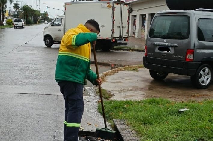 Ante las precipitaciones previstas durante la jornada, los operarios comunales efectúan limpieza de sumideros y retiran residuos para evitar anegamientos.