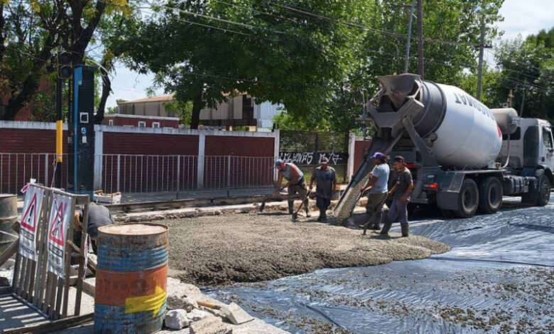 Por otra parte, en la reconstrucción vial sobre Av. Hipólito Yrigoyen, de Combate de San Lorenzo a El Plumerillo, procedieron con el vuelco de concreto.