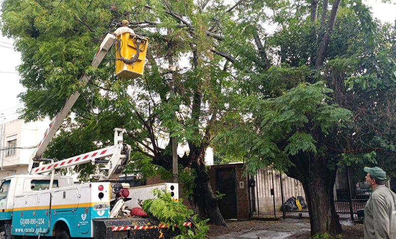 Los operarios sanearon sumideros, bulevares y recolectaron tanto residuos como ramas caídas en KM26,700, San Nicolás, Santa Inés, Santa Rosa, zona céntrica, entre otros puntos del distrito.