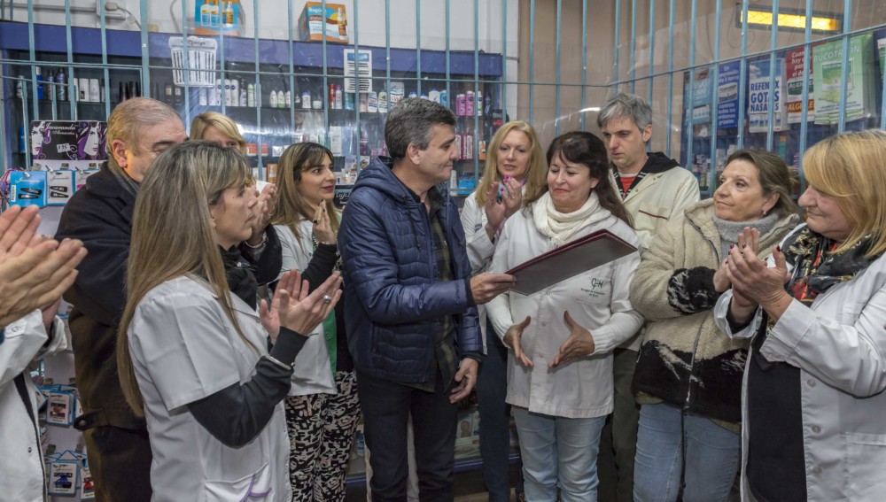 El acto de entrega del decreto tuvo lugar en la Farmacia Brussolo, de William Morris. Participaron farmacéuticos de todo Hurlingham.
