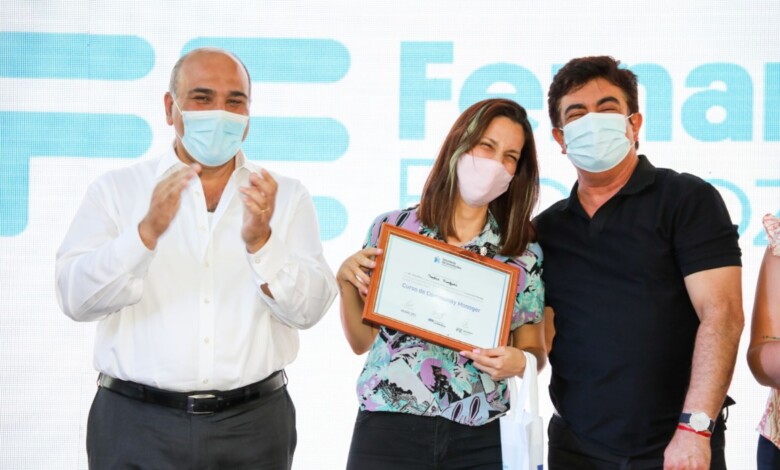 El intendente de La Matanza, Fernando Espinoza, junto al jefe de Gabinete de la Nación, Juan Manzur, realizaron la entrega de certificados a los primeros egresados de los cursos digitales gratuitos “Matanza Innova”, proyecto impulsado por la Secretaría de Juventudes del municipio y con certificación de Google Ads y Facebook, en el que se dictan materias vinculadas al Marketing Digital, Data Analysis, Data Science, Desarrollo en WordPress, Full Stack, Desarrollo Web, Marketing Político e Inteligencia Artificial.