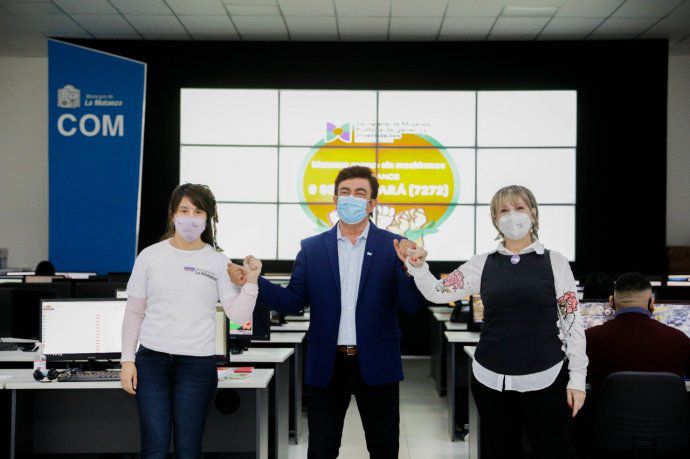 En el sexto aniversario del "Ni Una Menos", el intendente de La Matanza visitó el call center del 0800 PARÁ de La Matanza.