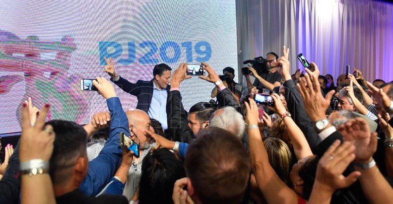 Gray estuvo solo en el escenario, con la leyenda 2019 de fondo y llamó a construir la unidad partidaria porque «en esta nueva etapa nos necesitamos todos unidos para construir fortalezas».