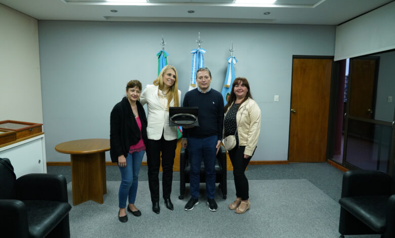 Durante el encuentro, el intendente entregó una bandeja grabada como reconocimiento a la trayectoria de la docente, quien también se desempeñó como vicedirectora de la Escuela Primaria N°20 de El Jagüel.