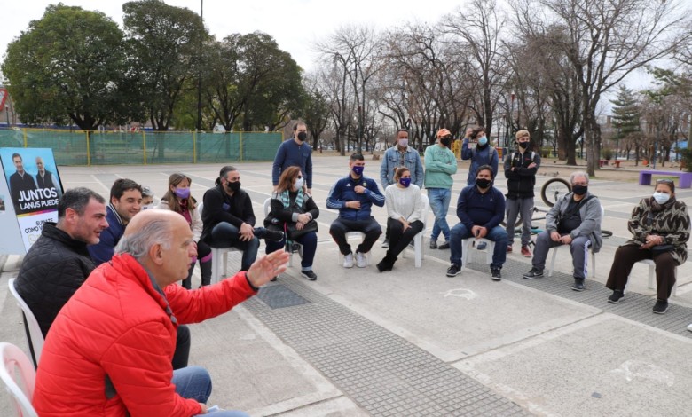 El Intendente Néstor Grindetti y el Precandidato a Concejal de Juntos en Lanús, Damián Sala, conversaron en un encuentro al aire libre con vecinos de Remedios de Escalada sobre las mejoras que se realizaron en los últimos meses en el barrio.